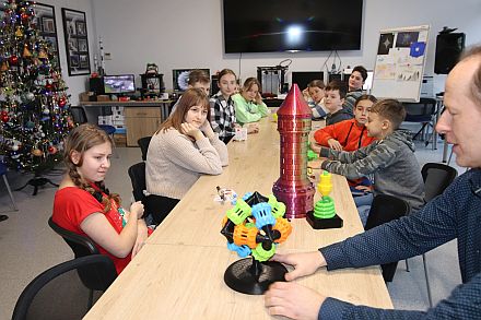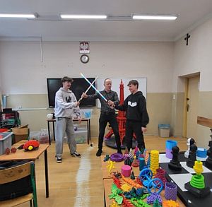 Zajęcia 3D - Malachin, 24 kwietnia 2025r.Zajęcia z 2 grupami uczniów szkoły średniej w Malachinie. Rozmawialiśmy o różnych zastosowaniach druku 3d, sposobach powstania części z wydruków, które można było obejrzeć i dotknąć, było również o drukarkach 3D na Międzynarodowej Stacji Kosmicznej ISS.